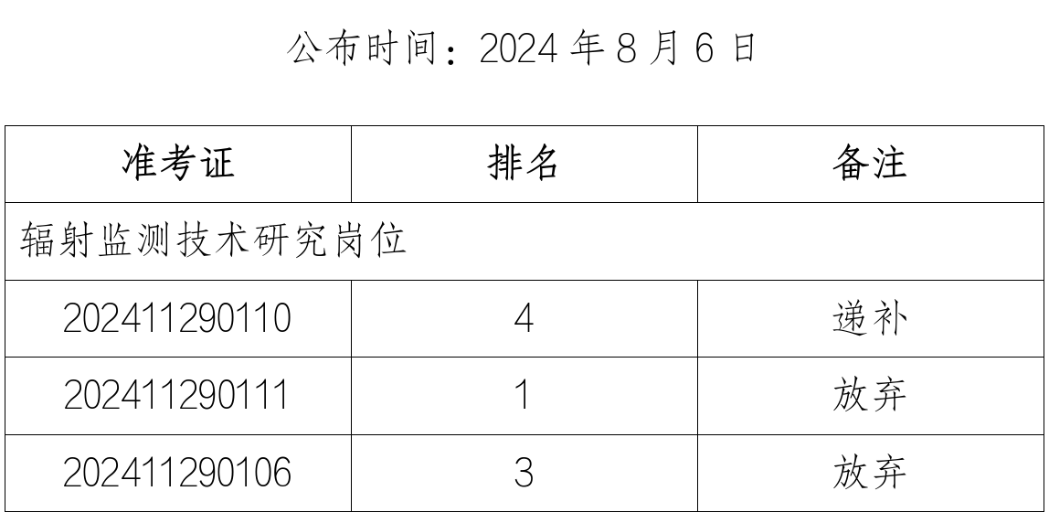 浙江省辐射环境监测站2024年公开招聘递补人员名单
